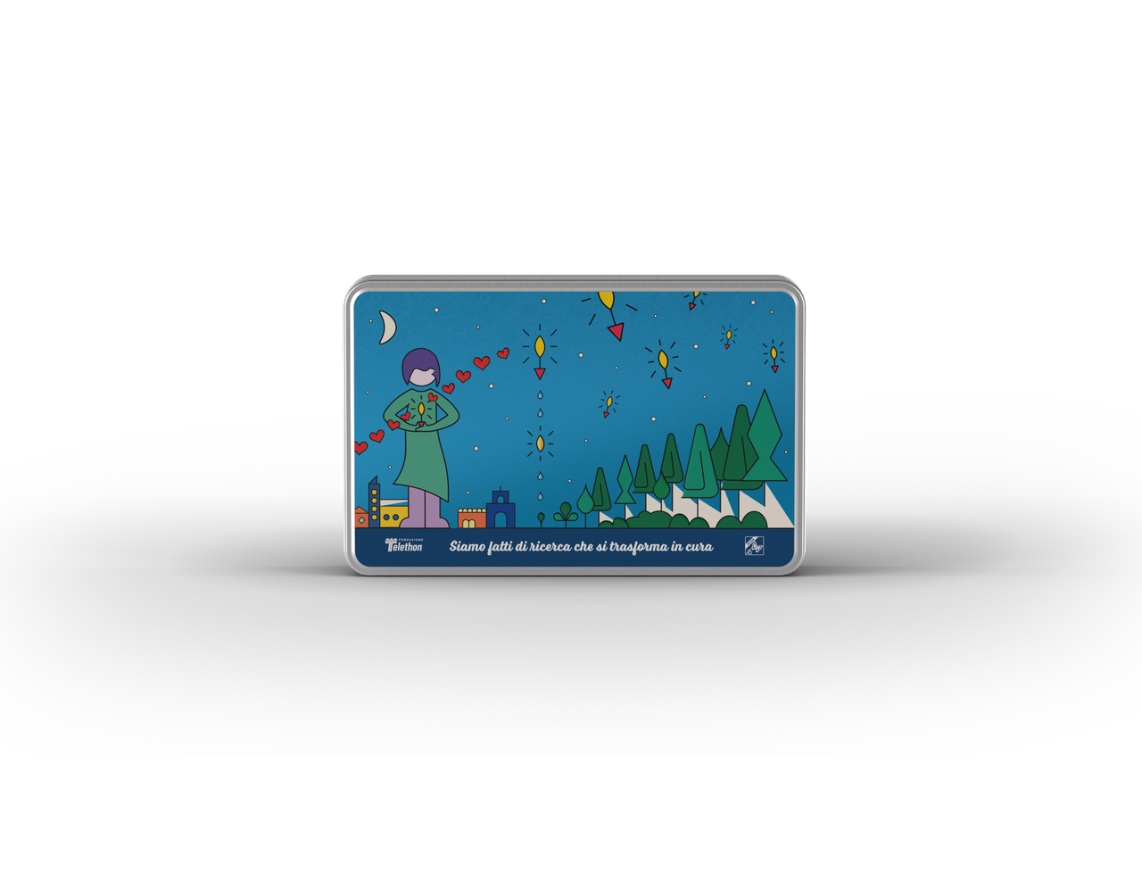 Lascia un ricordo speciale ai tuoi invitati: scegli i Cuori di biscotto con cacao e gocce di cioccolato da usare come bomboniera per le tue ricorrenze. I biscotti a forma di cuore sono realizzati dalla storica pasticceria genovese Grondona con materie prime di qualità e sono custoditi in una confezione esclusiva: una scatola di latta, riutilizzabile, decorata con un’illustrazione fresca e originale. Scegliendo i Cuori di biscotto sostieni la ricerca e dai forza alle mamme che ogni giorno sono al fianco dei loro bimbi con una malattia genetica rara.